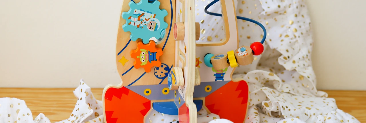 Rakéta motoros tevékenységekkel 4 motoros tevékenység az űr szerelmeseinek A Tooky Toy motoros tevékenységekkel rendelkező farakétája 2 éves korig szórakoztatja a gyerekeket. Számos tevékenységet kínál, mint például gyöngylabirintus, fogaskerekek, pult vagy mozgó formák. Mindezek a játékok tér témáj..
