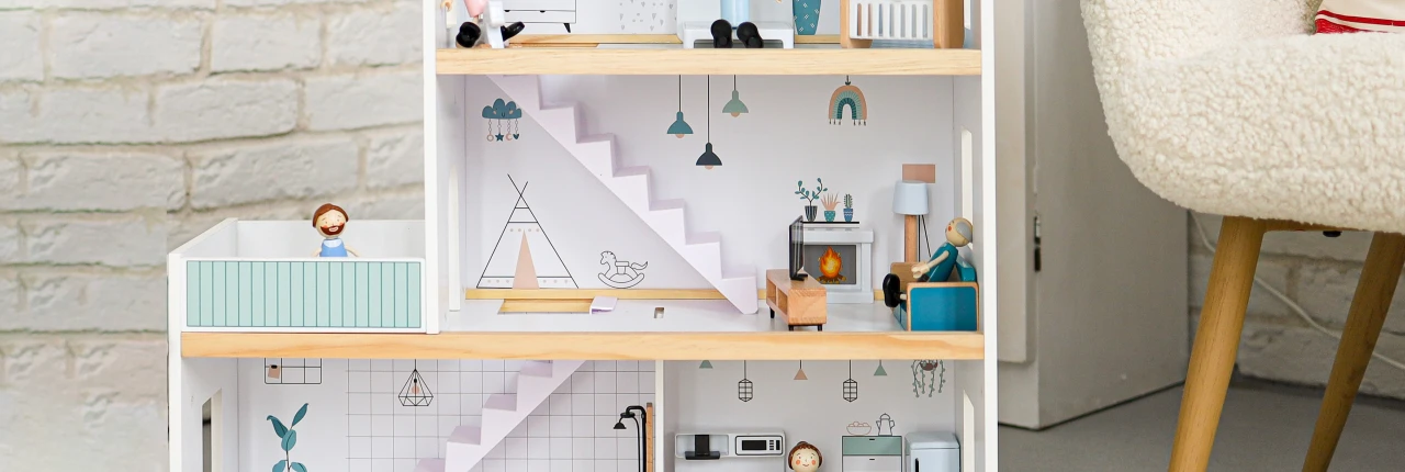 A Sky babaház ötvözi a hagyományos és a modern stílust. A játék tompa fehérre festett, natúr fa és pasztellkék részletekkel. Bármelyik gyerekszobában kiemelkedik, a színek nagyon semlegesek, fiúk és lányok számára egyaránt. Hangulatos hely babák és figurák számára, a ház kreatív szerepjátékra ösztön..