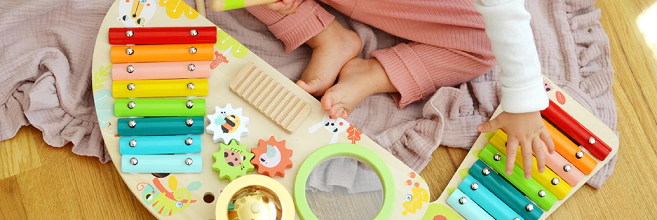 Xylophone Crocodile Ezzel a xilofonnal öröm lesz játszani! A krokodil témájú xilofon rabul ejti gyermekeit. Az egyes billentyűk színének köszönhetően a gyermek könnyen megjegyezheti az egyszerű dallamokat. A csomag két kalapácsot is tartalmaz, amelyeknek köszönhetően igazi zenészként tud xilofonozni..