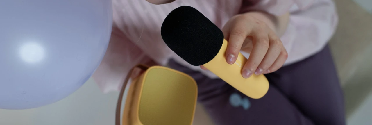 Bluetooth Karaoke Set Mikrofon és Lila hangszóró Énekeljetek és érezzétek jól magatokat bárhol és bármikor A Lalarma lila karaoke szettje minden zenét szerető gyermeknek tökéletes. A Bluetooth-kapcsolatnak köszönhetően könnyedén csatlakoztathatja okostelefonjához vagy táblagépéhez, és közvetlenül ke..