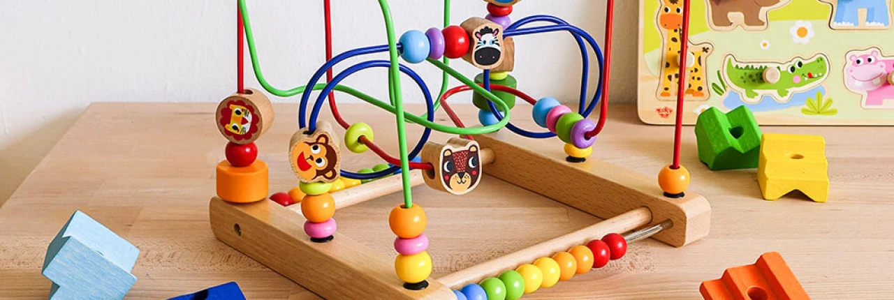 Lúka Pasztell aktivitáskocka 5 motoros tevékenység egyben! A Tooky Toy gyönyörű, fából készült tevékenységkocka lágy pasztell színű réti motívumokkal, tartalmas szórakozás forrása lesz a kisgyermekek számára. 5 különböző motoros tevékenységet tartalmaz: labirintus állatokkal, 4 alakú betét, fogasker..
