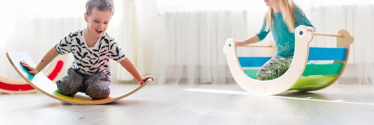 Ringatódeszka gyerekeknek egy egyszerű, fából készült hajlított tábla, amely megtanítja a gyerekeket egyensúlyozni, erősíti a lábakat és a csípőizmokat. Minden tömör fából készült!